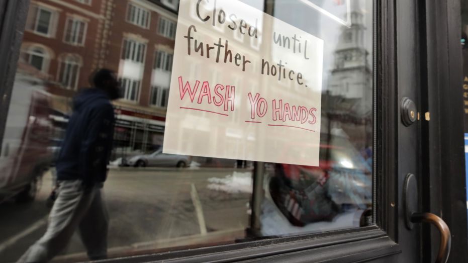 A closed sign hangs in the window of a shop in Portsmouth, N.H., March 25. (AP Photo/Charles Krupa)
